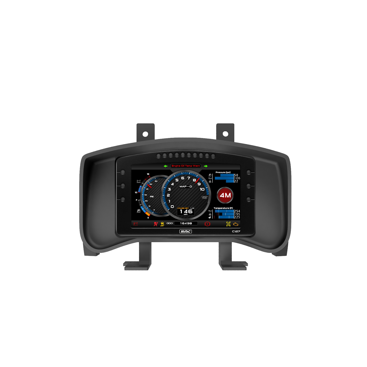 These mounts are made from ABS plastic, similar to most OEM interior trim pieces. We also make sure to overengineer all of our mounts so that even as your 1000hp+ motor shakes the bolts loose on your car, your cluster mount will never fail.